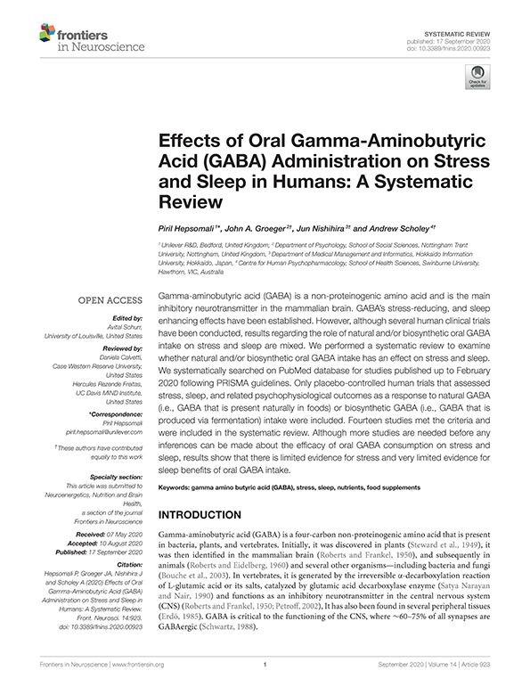GABA ( γ-胺基丁酸、γ-Aminobutyric acid)是大腦中重要的神經傳導物質,就像是「大腦的煞車系統」,能抑制大腦不要過度興奮,進而緩解壓力消除緊張,有促進睡眠、安定情緒的效果。眾多研究結果顯示,食用 GABA 可以調節壓力與促進睡眠。